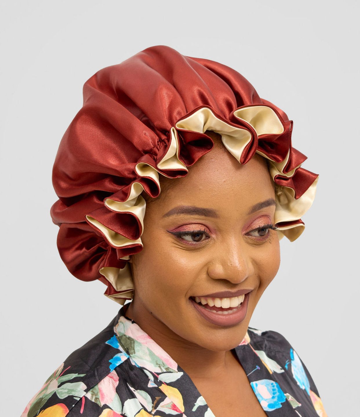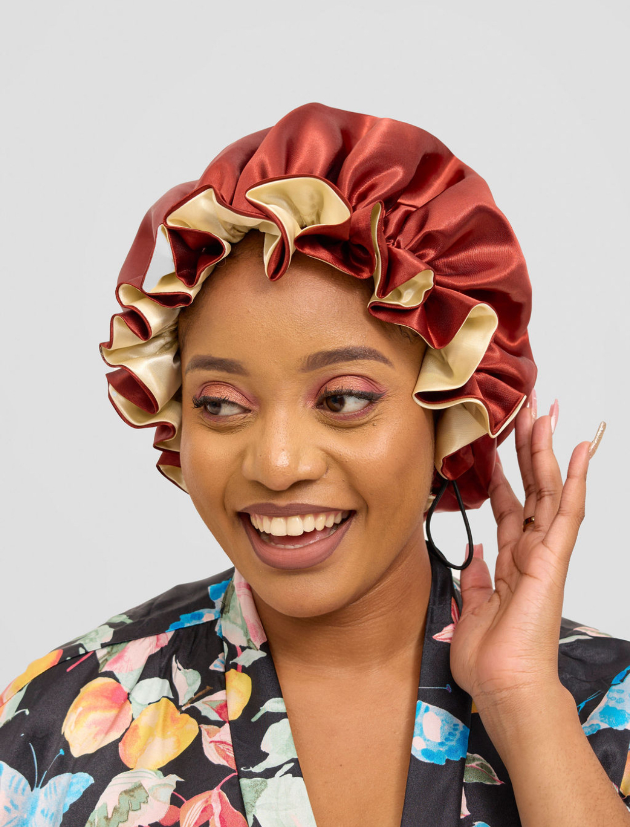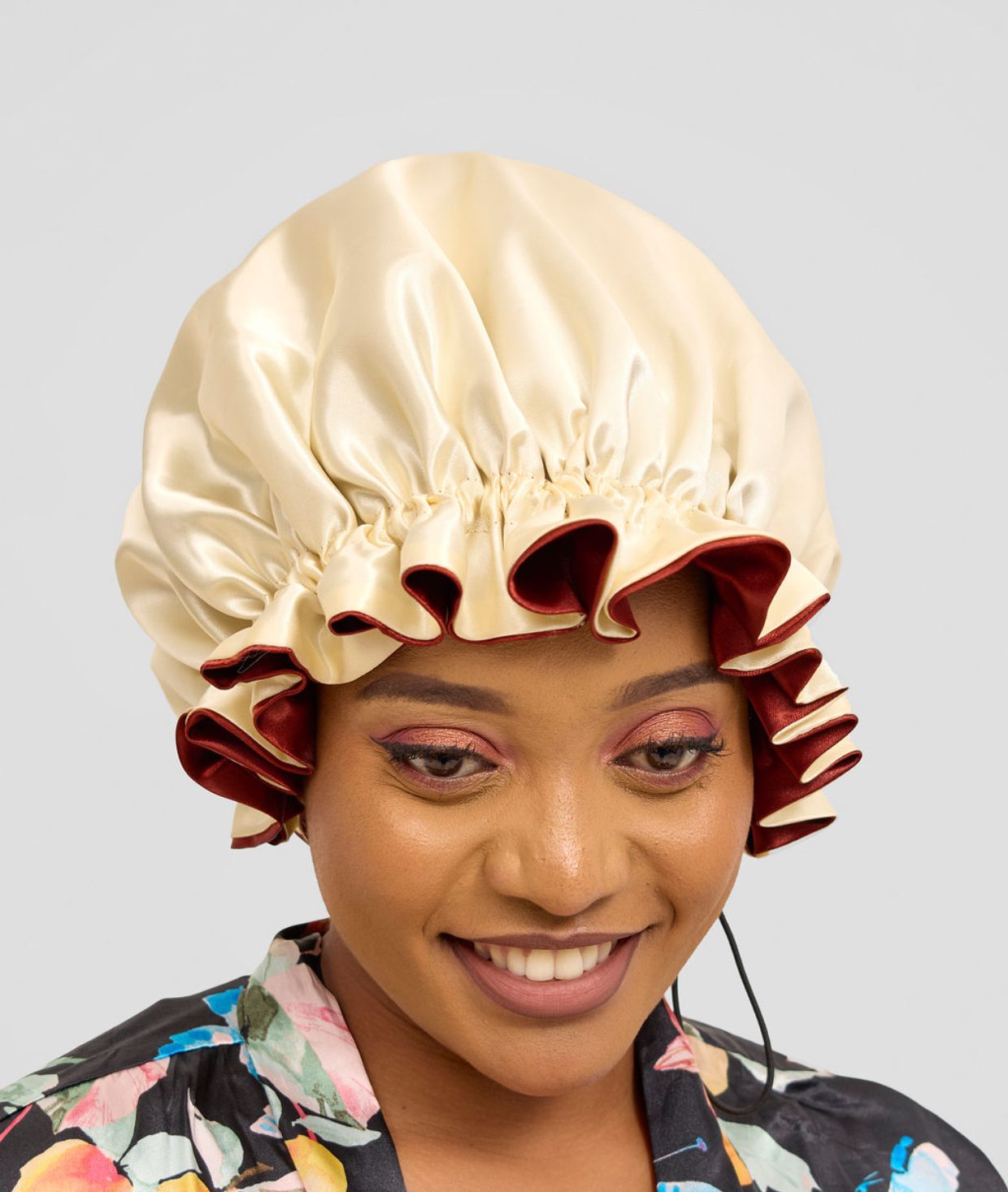 MEDIUM RUFFLE BONNET, SATIN BONNETS, SHOWER AND HAIR CARE