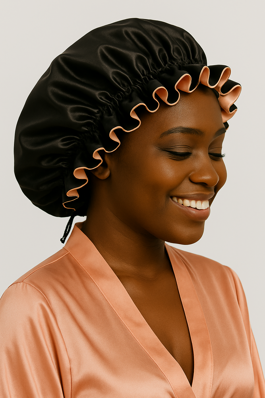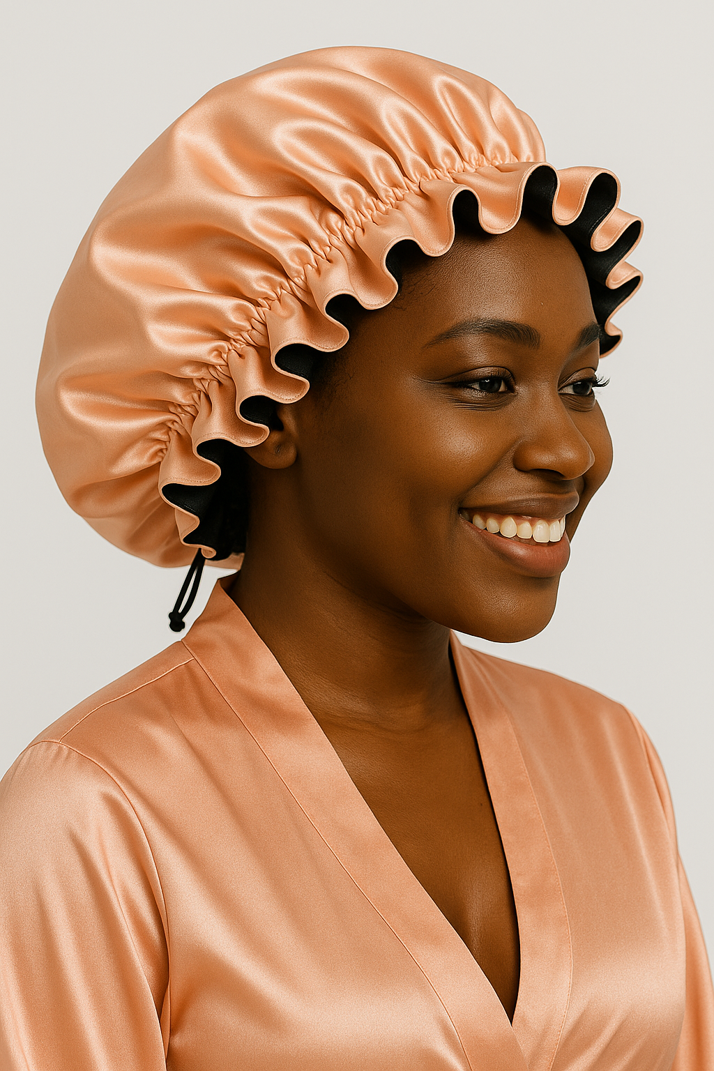 SATIN BONNETS, SATIN LARGE SIZED RUFFLE BONNETS, SHOWER AND HAIR CARE