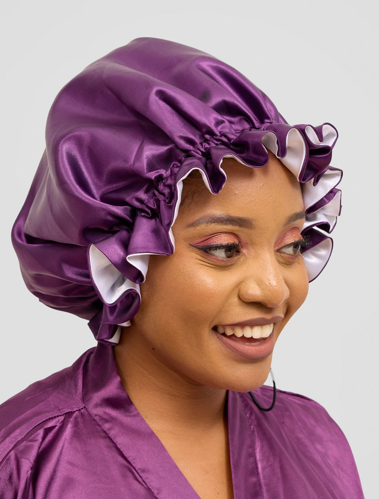 MEDIUM RUFFLE BONNET, SATIN BONNETS, SHOWER AND HAIR CARE